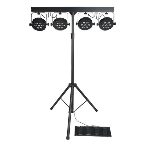 The perfect solution for all musicians, mobile DJ's and small rental companies. The Compact Power Lightset brings you a complete lightset including all accessories in only one package. It comes complete with 4 high power and compact LED spots. Each spot contains 7 3-in-1 RGB LEDs in order to create a high light-output. The spots are mounted on the T-Bar which has a built-in controller and power-pack. The T-Bar can be controlled either by the included footswitch or by DMX. Delivery is including carrying bag, stand and footswitch. So ready to use.
